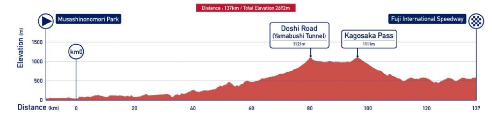 La prova in linea su strada femminile alle Olimpiadi di Tokyo presenta un percorso ondulato e selettivo, ma più semplice del percorso dei colleghi uomini. Dalla partenza a Musashinonomori Park all’arrivo al Fuji International Speedway saranno 137 i chilometri da percorrere con 2692 metri di dislivello. Dopo un primo tratto pianeggiante di circa 50 km, si inizierà a salire per il primo GPM di Doushi Road (4.3 km al 6.1%) al km 81, ma nonostante vengano segnati come GPM solo gli ultimi 4.3 chilometri anche i precedenti 30 sono in leggera ma costante salita. Sedici chilometri più tardi sarà invece la volta della seconda salita di giornata, il Kagosaka Pass (2.2 km al 4.7%), seguito da 15 chilometri di discesa. Giunti a questo punto non sono più previsti GPM e si andrà verso il circuito del Fuji, raggiunto ai meno 18 chilometri, dove è previsto l’arrivo nel tracciato finale.
